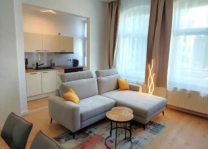 Geniet van het gemak van een ingerichte kitchenette in Modernes City Apartment, 4 Pers, Kueche, Arbeitsplatz & Wlan, 3Min Zur Tram, zodat gasten hun eigen zelfgemaakte maaltijden kunnen bereiden. Central Magdeburg treinstation is afstand ervandaan en Arndtstrasse bushalte vrij dicht bij Modernes City Apartment, 4 Pers, Kueche, Arbeitsplatz & Wlan, 3Min Zur Tram.